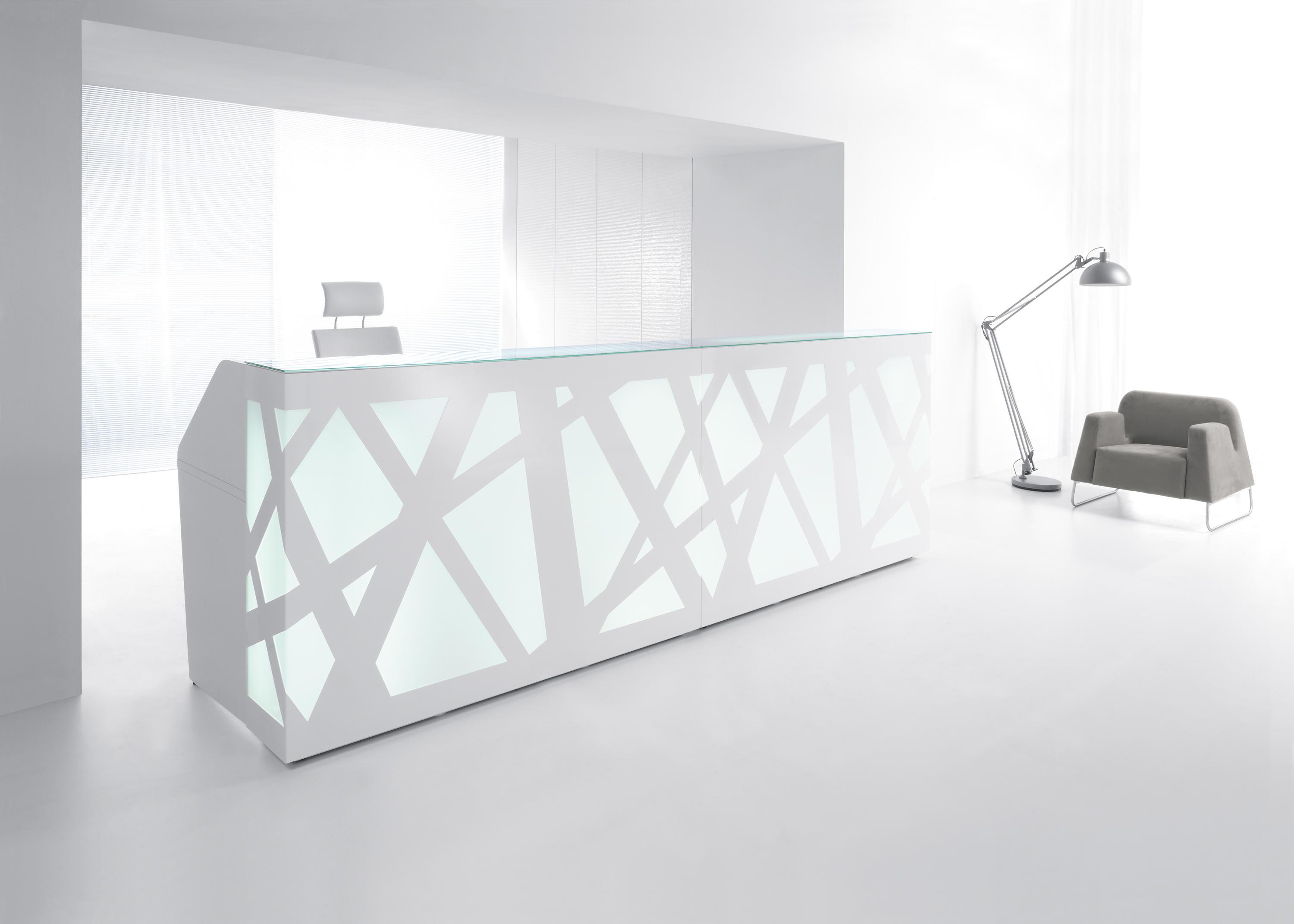 Этот модульный ресепшн оригинальной формы будет достаточно, чтобы устроить какой-нибудь прием зала. Он очень эффективен в темных помещениях благодаря своей облегченный интерьер, который выполняет роль эффектной галоген. Белого металла с ажурными тонко раундов тело и контрастирует с подчеркнуто интерьера, наиболее характерные тенденции этого рецепции. Красивые лобной части счетчика также скрывает эргономичный интерьер с широкой столешницей. Его светодиодные системы освещения с дистанционным управлением позволяет регулировать цвет и интенсивность света. Освещение также может быть запрограммирован с помощью постоянной или пульсирующей ритмической тонах.