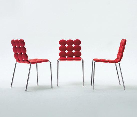 Коллекция штабелируемые стулья и табуретки, сделанные мягкие интегрального полиуретана и хромированная металлическая конструкция. Форма начинает общаться и расширять с визуальной точки зрения, мягкость материала: цилиндрических элементов, которые делают сиденье и спинка очень мягкие и уступают вес, приспосабливаясь к телу, благодаря Спрингс, вставлен поролон. Начальная идея в личной мечтой дизайнера Monica Graffeo : она хотела создать удобные, мягкие и не агрессивные объекты. Дизайнер хотел реализовать стул, что позволяет избежать привычного покалывания в ногах, из-за травматического контакта между телом - мягкой и жесткой структурой. И монетных дворов на самом деле является объектом, который может передавать, также в визуальной точки зрения, мягкость и комфорт. Доступны в цветах : белый, черный, красный состав : председатель, с или без подлокотников, поворотные стулья, регулируемые по высоте.