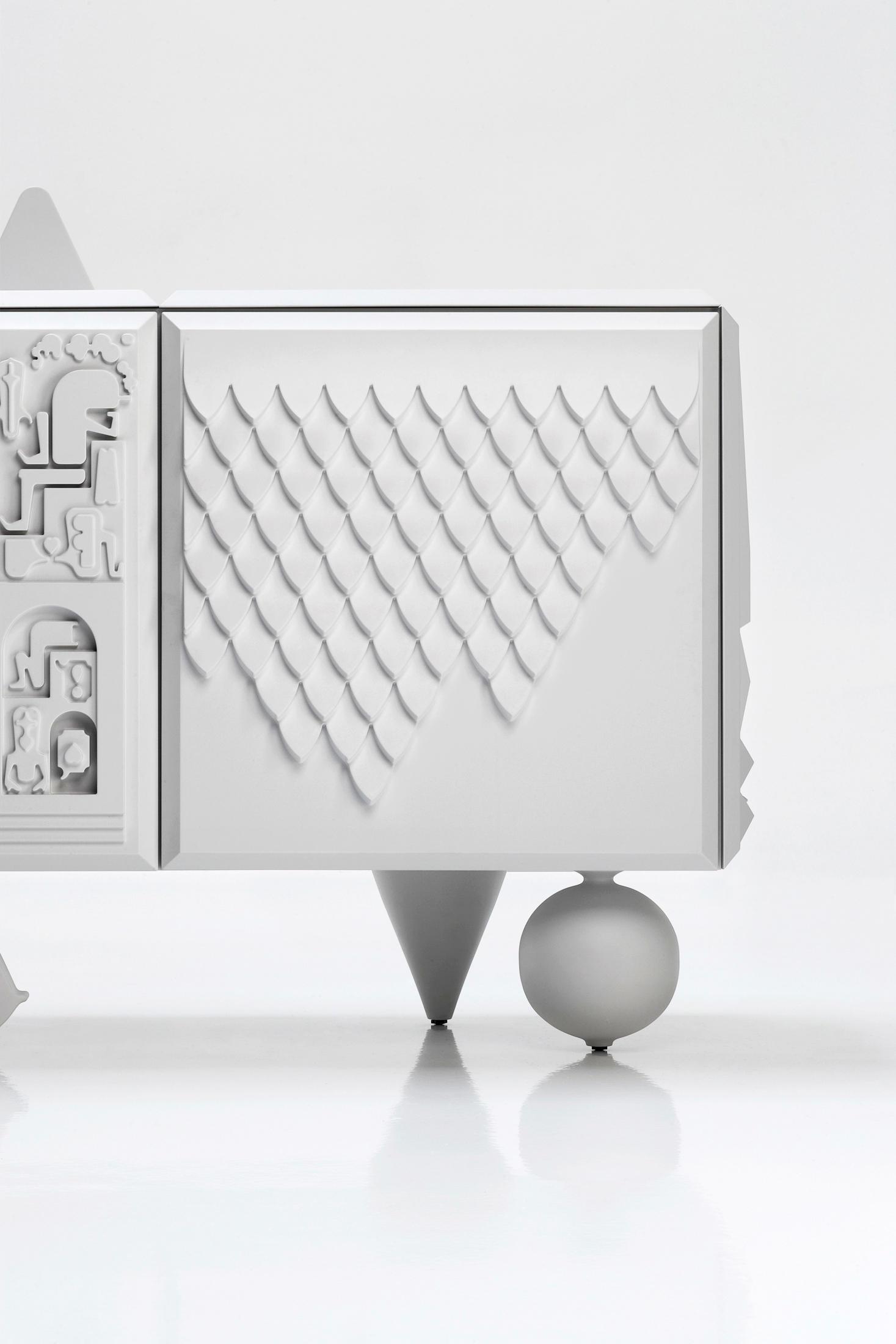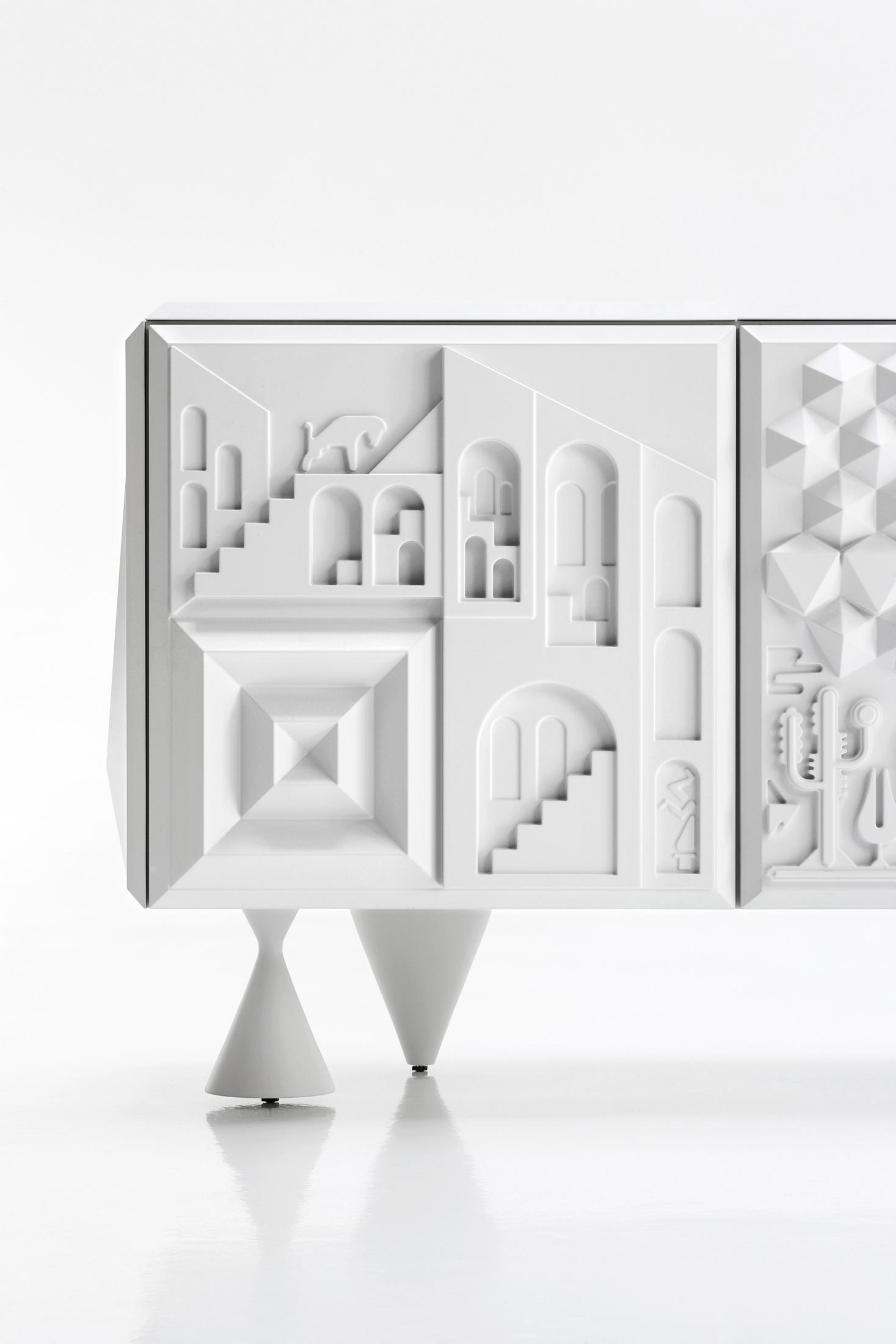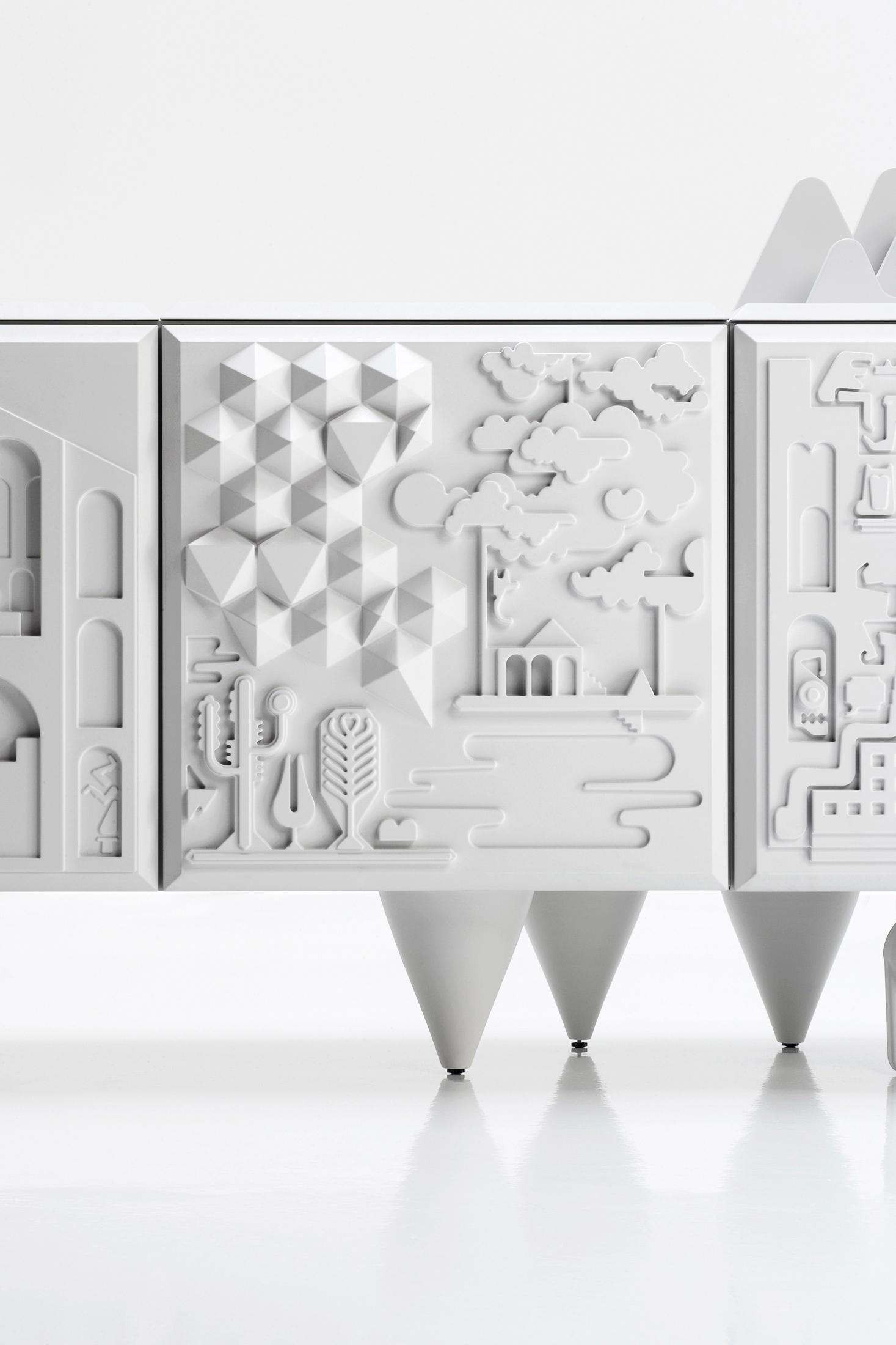 Редко делает графический дизайнер (два, в данном случае) зайдите в сфере мебельного дизайна. Мы должны идти далеко назад во времени, чтобы найти их, во времена высокого и низкого рельефов. Это именно то, что Антуан Audiau и Мануэль Warosz сделали, пару внеочередного парижские художники, которые подписывают свои произведения как Антуан + Мануэль. Кабинет они разработали для новой коллекции вывели БД Барселона дизайн-это удивительная смесь искусства и ремесел, иероглифического языка, современной графикой, фантазии и оптимизма. Он производится с качеством прошлых лет, но через сегодняшний€™с технологий в двух версиях, базовой и топ, отличается форма верхней и поскольку более эксклюзивный вариант также предлагает возможность выбора цвета в соответствии с RAL цвета ссылок. Основные отделки кузова и полка сделаны в черный или белый меламин. Двери, однотонные сверху и с боков в интеграл впрыска полиуретана, меламина на доске поддержки. Ножки из массива дерева ольха в один кусок, лакированные и микро-текстурированная в тот же цвет, что и двери. Топ отделки кузова и полка изготовлены из лакированного микро-текстурированной меламина. Двери, однотонные сверху и с боков в жесткой лакированного микро-текстурированной полиуретановой инъекции. Топ с рельефами из лакированного микро-текстурированной ДМ ДСП ножки из массива дерева ольха в один кусок, лакированные и микро-текстурированная Цвет, выбранный Заказчиком по RAL карте.