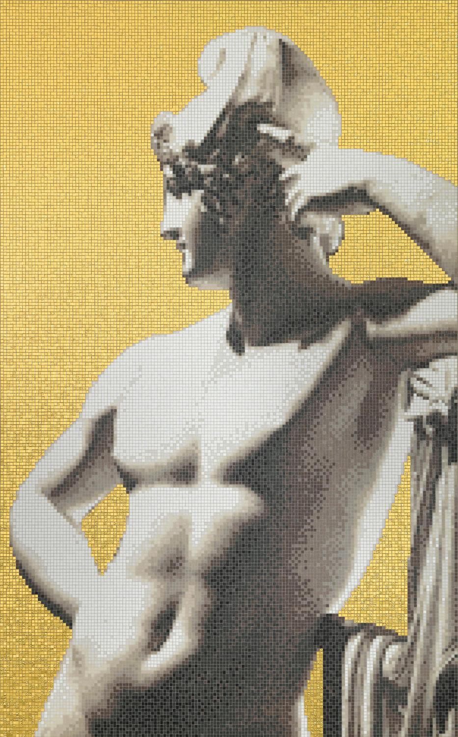Улица bisazza расширяет свою домашнюю коллекцию с ограниченным тиражом новую серию портретов, Канова золота, с участием мифологических персонажей продемонстрированы на драгоценные фоне золота 24k мозаики. Эти великолепные мебелью дополняет, с их декоративное очарование, придают сильный характер, чтобы любое жилое помещение. Выражение вневременной дизайн в неоклассическом стиле, в отеле canova золото коллекция мозаичных полотен также празднует сегодня's новейшие тенденции с возвращением к эстетике великолепии и блеске золота. Улица bisazza стекло и золото 24k мозаичное панно, 10х10 мм плитки. Дизайн Карло Даль Бьянко. Размер: 157,9x252,5 см