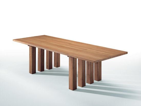 Прямоугольный стол в натурального ясеня, натуральный орех или орех мореный орех отделка, в четырех измерениях. Топ с 3 станами и базы с 6 ноги. Два измерения: см. 225 х 78,5 х 74 см. 280 х 78,5 х 74 топ с 4 кольями и базы с 8 ноги. Два измерения: см. 225 х 105 х 74 см. 280 х 105 х 74 деревянные полосы, образующие верхнее шесты и ножки стола имеют одинаковую ширину.