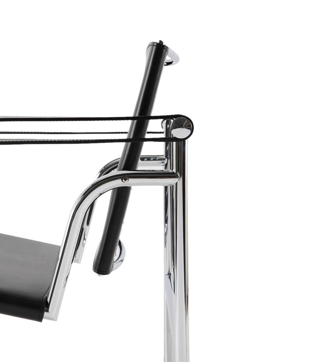 Слинг кресло с полированными трехвалентное хромирование (СГ3) или полуглянцевый черной эмалью стальная рама. Сиденье и спинка: — спереди или воловьей (черная кожа руки); — седло кожа в широкой цветовой гамме совпадающие с оружием. Открытая версия также доступна для этой модели. Этот легкий и компактный стул контрапунктирует Fauteuil Гранд комфорт, массивнее, и он находится в идеальном балансе с таблицей в стальной трубой и chaiselongue. Существует три версии данного кресла, которые были предназначены для разных видов использования: модели, который был показан на салоне d’Automne в 1929 году создана Версия для виллы Церкви в 1928 году, и еще одна версия, созданная в 1930 выставка Союза ДЕЗ артист Modernes. LC1 Открытый: конструкция полностью выполнена из полированной нержавеющей стали AISI 304. Ткань доступна в 5 цветах и используется высокоэластичная полиэфирная нить, с ПВХ покрытием. Ткань натягивается над структурой благодаря специальной щеткой из полированной нержавеющей стали пружины и является полностью водонепроницаемым. 60 х 65 х 64/40 см