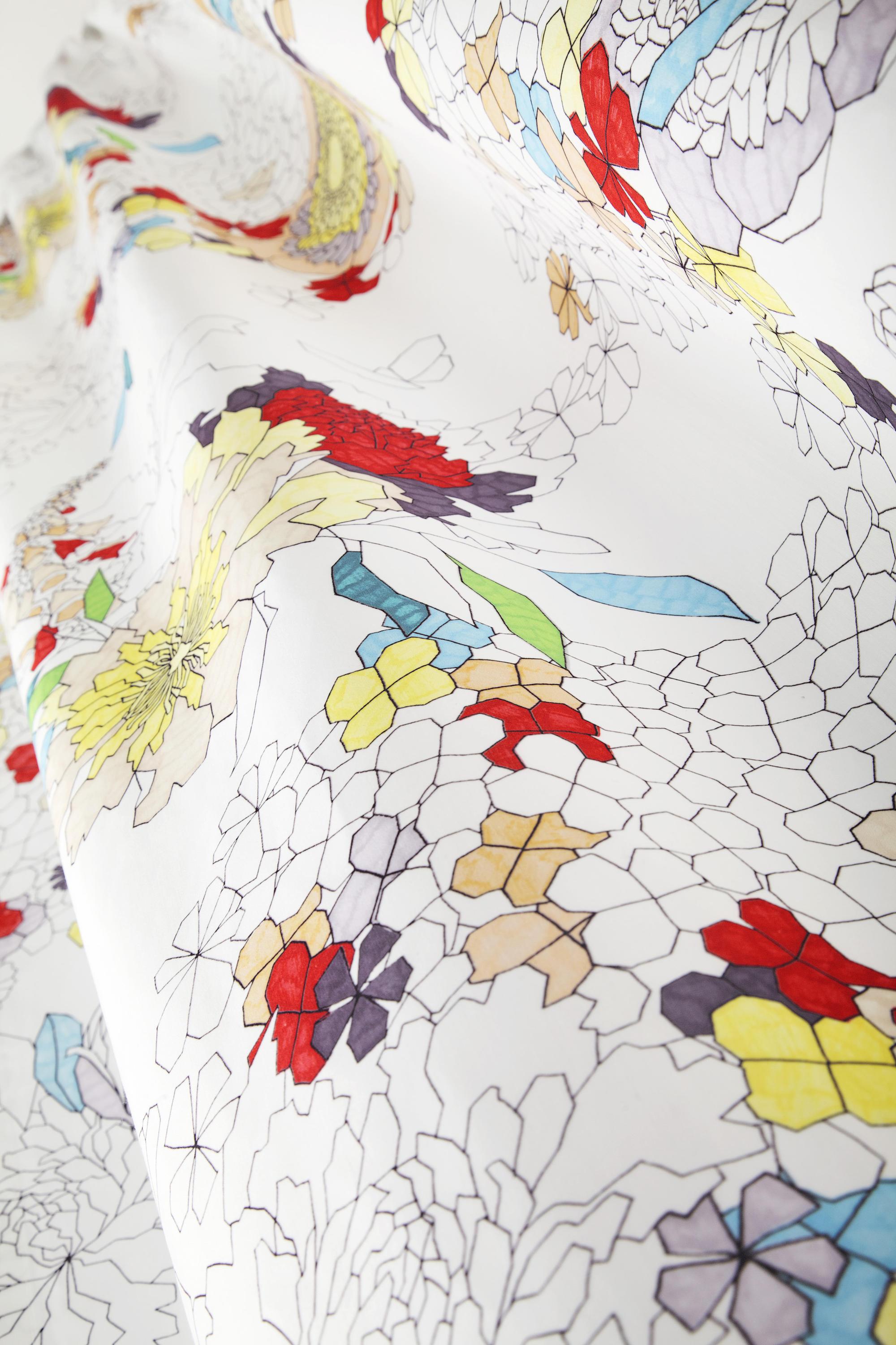 Жив, несомненно, дерзкий eye-catcher: море разбросаны цветы отображается в геометрические фигуры, предоставление впечатляющий ощущение живой пышностью и великолепием. Цветочные мотивы в этот радостный, экспериментальные изюминкой коллекции напоминают нарисованные от руки фломастером эскизов художника notebook. Жив отличительные цвета из-за высокого качества швейцарской струйной печати.