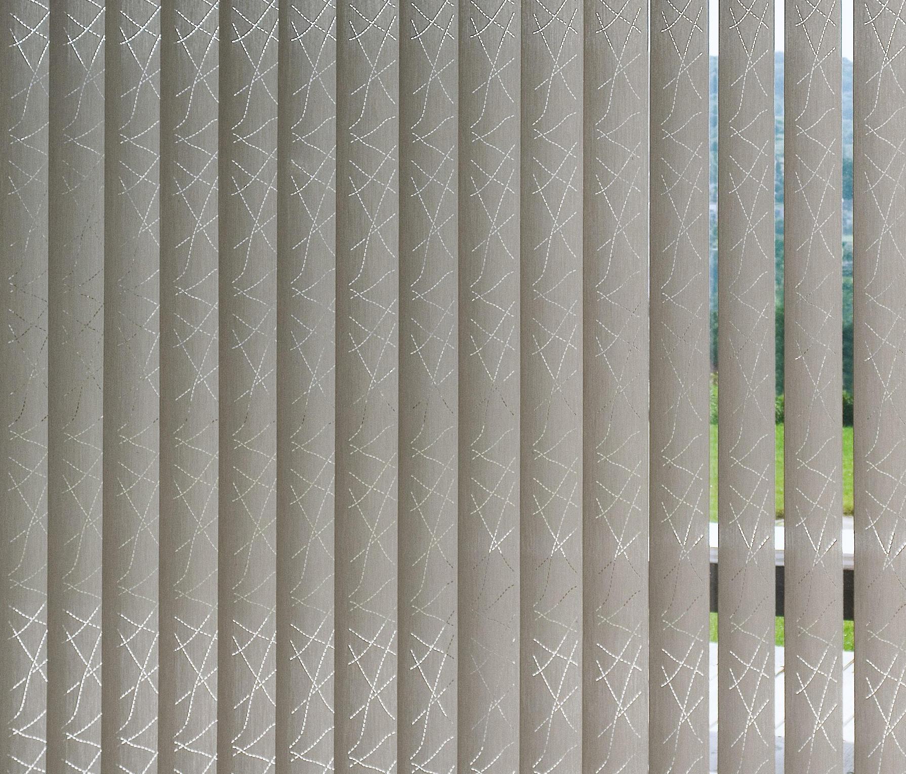 Текстильные вертикальные жалюзи; вырезать овалы, случайно договоренности разбросаны по всему вертикальные полоски из ткани. Дизайн предполагает, мечтательный, игривый внимание. Он доступен на Irolo искусства. nr. 0010504 качество во всех его тонах и предлагает декоративные вариантов укладки для дома.