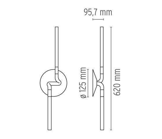 Настенный светильник с отраженным светом. Инъекции формованных рассеиватель из метакрилата с фото гравировкой внутренней отделки. Рассеиватель крепится к корпусу с помощью никелированный неодимовый магнит. Головка отлита из алюминиевого сплава. Стены вложений литой нейлон ра 6.6 белый 20% стекловолокна. Роза сделана из литой алюминиевый сплав. Тело из экструдированного алюминия каландрированная. Корм для светодиодов находится в пределах роза. Каждая головка может быть повернута 45° вокруг своей вертикальной оси. Компоненты закончил с аэрозольной краской. Краска на водной основе, а следовательно экологически чистые.