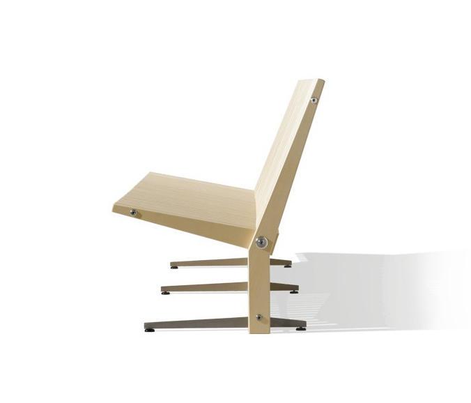 The Astral bench is made of ash or jatoba with lacquered or oiled finish. The construction forms a semi-circle whereby the bench bears its own weight and creates a unique seated sculpture.