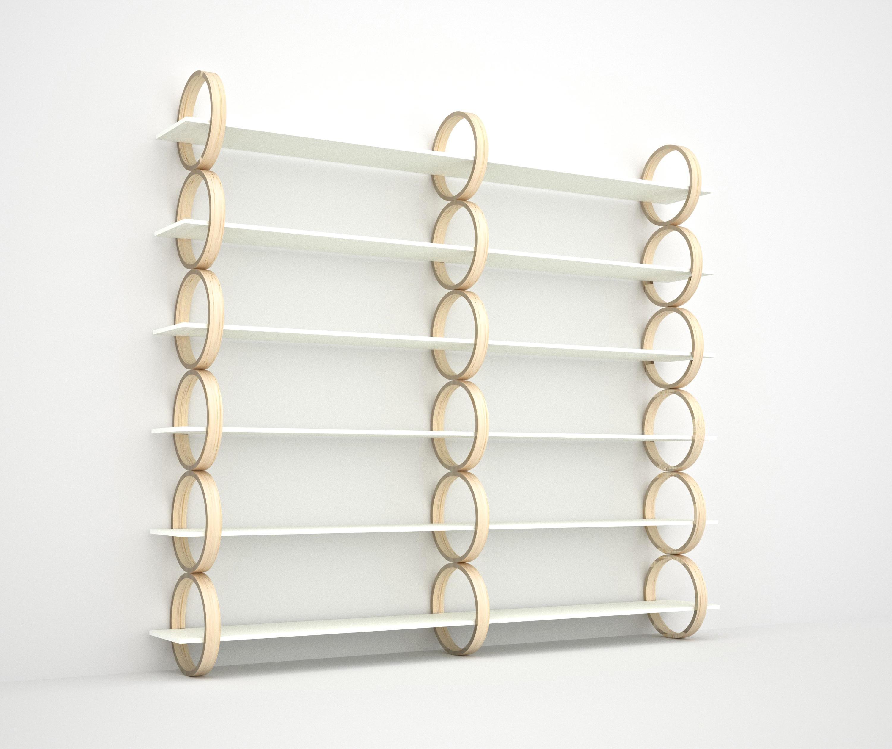 Полка с круговой консоли и полки в лакированного дерева. Гибкость и адаптируемость полка для самых разных условиях.