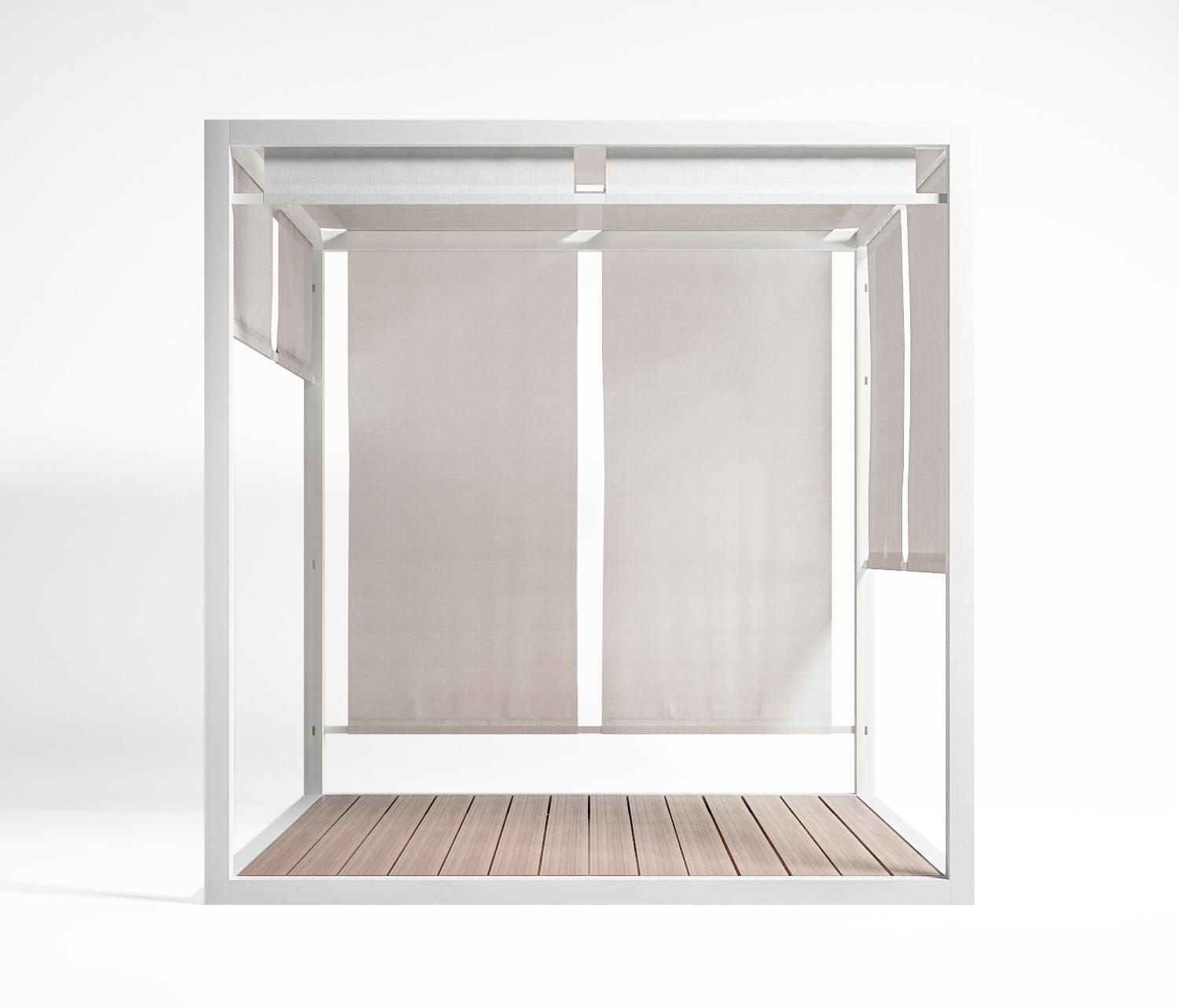 Экстерьер пергола системы изготовлены из анодированного алюминия и подвижные canrases из пластического материала. Наклонив пергола системы прислонившись к стене изготовлен из анодированного алюминия и подвижные canrases из пластического материала. только ткань в верхней части 98"x98"х100"ч 194"x98"х100"ч 194"x194"х100"ч