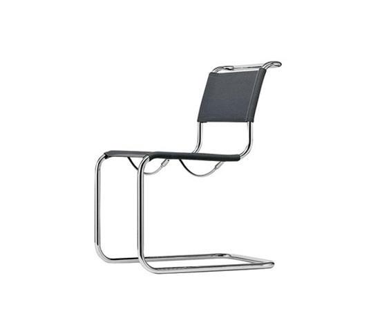 Шедевр от 1926: индекс S 33 и s 34 " Март Стам эти стулья являются первые консольные кресел в истории мебели. Они были использованы впервые в 1927 году в Вайссенхоф железнодорожным в Штутгарте. Начиная с 1925 г., Март Стам экспериментировали с газовыми трубами, которые он связывал с фланцами и разработан принцип пропускная способность стулья, которые не почивать на четырех ногах. Тем самым он создал строительный принцип, который стал важным строительным блоком в истории современного мебельного дизайна с его формальной брони. В начале, Стам еще не был сосредоточен на сгибании эффект согнутой трубчатой стали; наоборот, он был заинтересован в четкие формы, которые прекрасно вписываются в современные постройки того времени. Без (ы 33) или с подлокотниками (статья 34). Каркас из хромированной трубчатой стали. Покрыт приклад кожаные или пластиковые сетки в черный, белый или серебро. Подлокотники из массива бука или черного эластомера. Также доступен с кожи буйвола в "чистые материалы" версий.