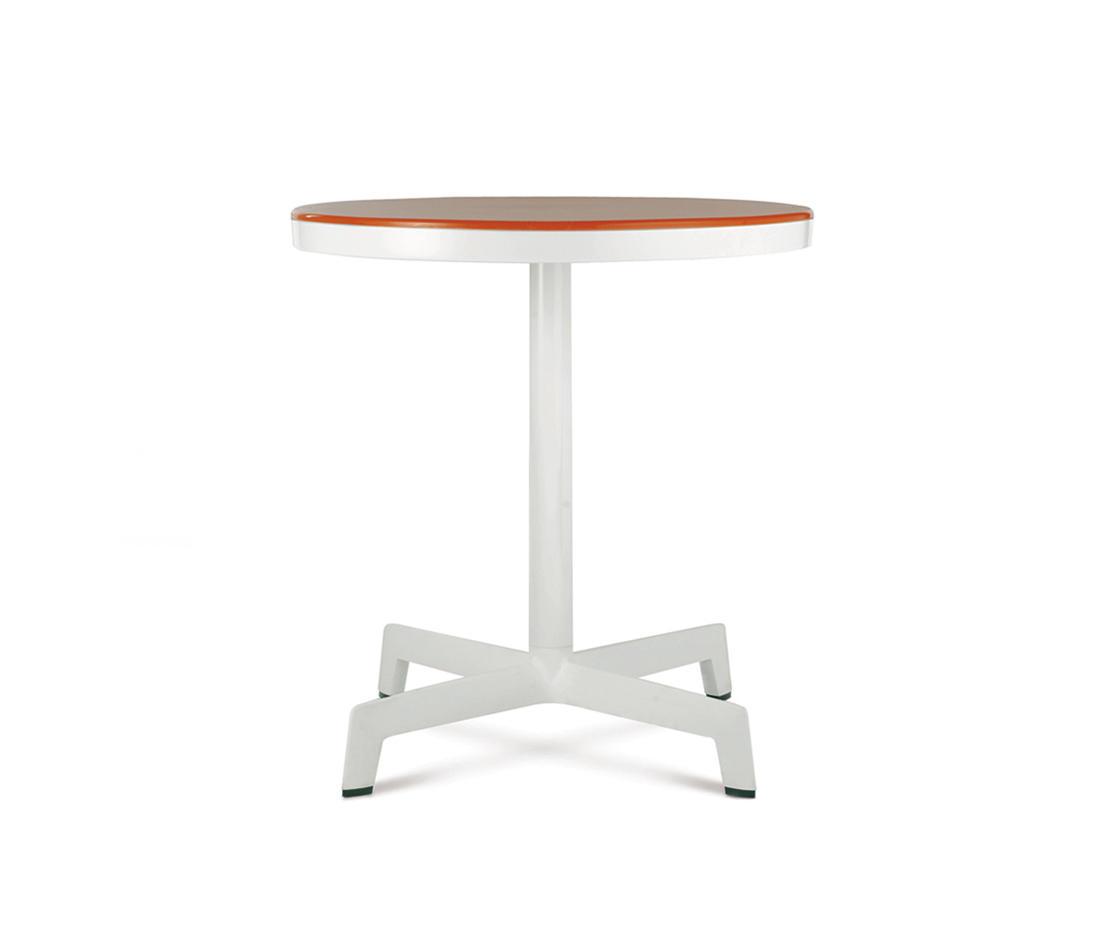 стол с высокими, простое или двойное основание постамента для внутреннего и наружного использования. Основание, состоящее из двух частей, корпус вводят с помощью полиамида и окрашенные утюг противовеса. Анодированные алюминиевые трубки, блестящий или матовый, или белый или черный лакированный алюминий труба, Ø 60x2 мм толщиной.