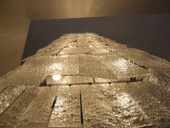 Люстра из упали кусочки стекла. Системы из нержавеющей стали кольца и резко кусочки стекла могут быть адаптированы к индивидуальным пространством.