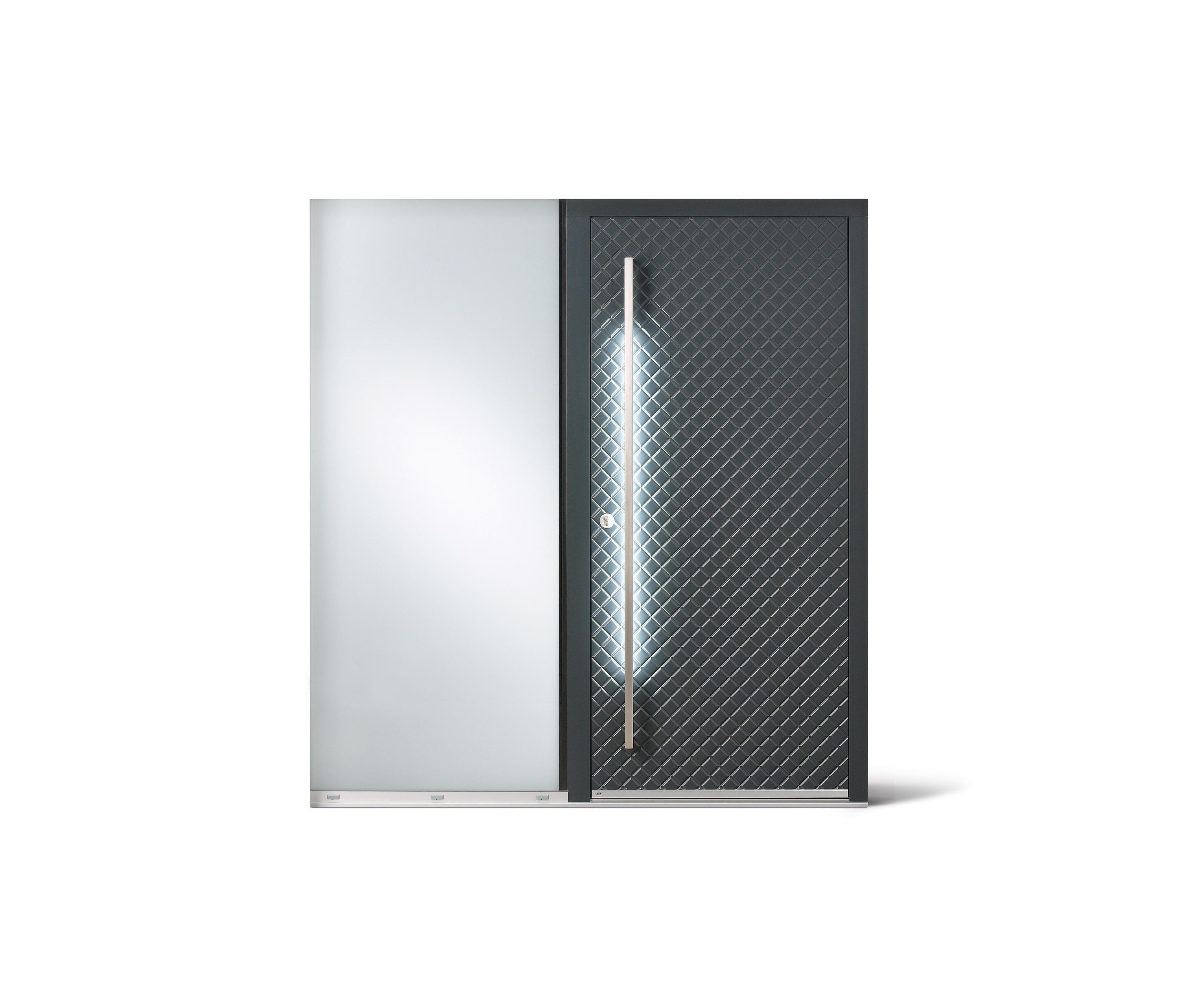 Evos двери состоят из высокой изолирующей пены core защищены восемь миллиметра компакт ламинат высокого давления. Ламинат-это тяжелее, чем алюминий, предоставляет огромный стабильность размеров даже при очень высоких или низких температурах и делает двери нечувствительна к влаге и устойчив к механическим повреждениям. Для покраски можно выбрать из палитры RAL и NCS цветов.
