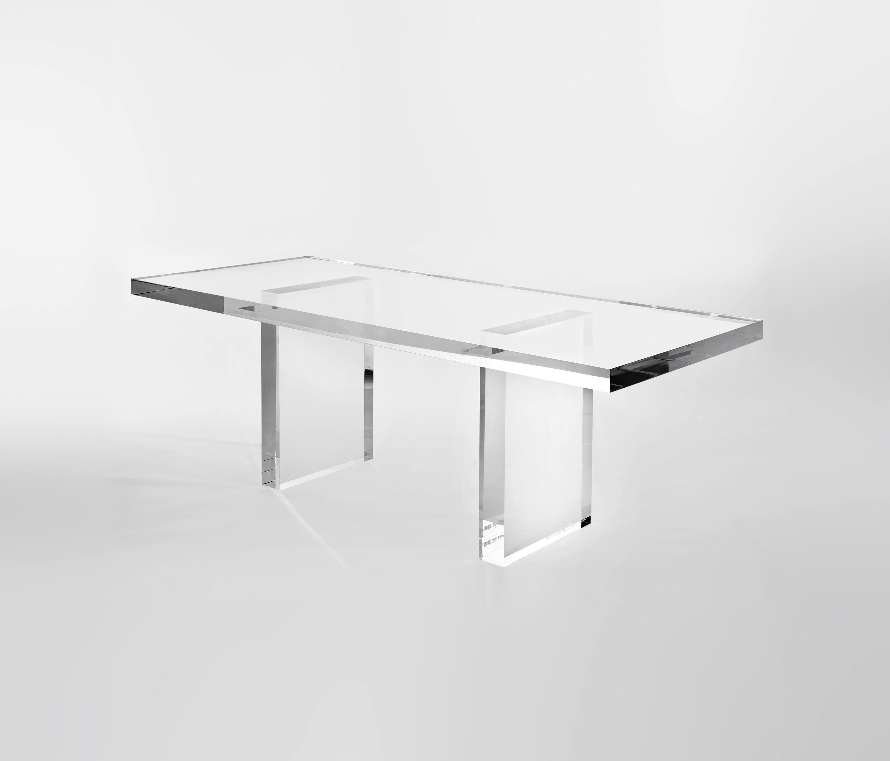 Уникальные монументальные куски "The Invisibles коллекция", представленный в 2010 году на Токуджин Йошиока были превращены сегодня в серии более легкие и универсальные элементы с меньшей толщиной, но неизменной неземной притягательностью. Kartell производит серию с использованием промышленного литья метод, который использует "пилот, плесень", который может обрабатывать почти "весы", вес и размер и гарантирует ее стабильность. В результате в чистом Kartell стиль, бренд, родила концепции прозрачности в мебель и, что более десяти лет экспериментирует с инновационными подходами к "невидимые мебели": новая коллекция с площади элегантные формы, которые, кажется, чтобы покинуть материальный мир и создают впечатление подвешенности в воздухе.