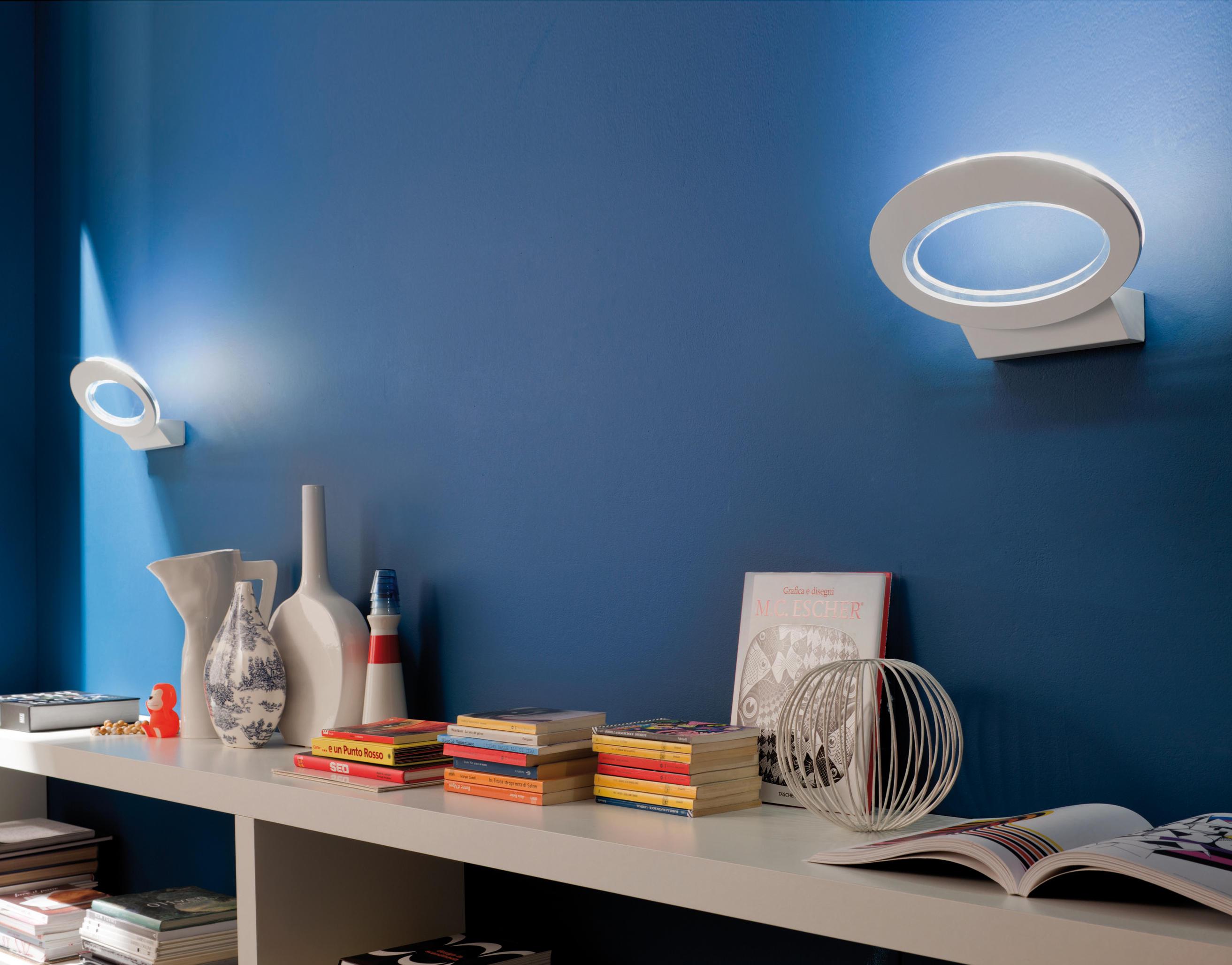 Eletta является настенный светильник, выделяется своей овальной конструкции. Передняя часть лампы в матовом белом лакированного алюминия, в то время как задняя часть из блестящих прозрачного плексигласа, создавая яркий контур и косвенное и рассеянный световой эффект.