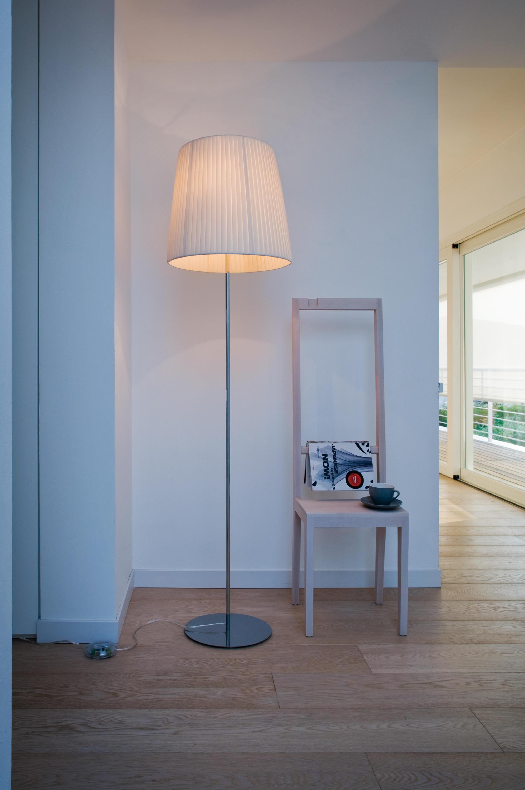 Серия светильников в слоновой кости плиссированные ткани pongee. Структура сделана из хромированной металл. Нюра доступен в качестве подвесной светильник с большим диффузором, как подвесной светильник с 4 малых диффузоров, и как настенный, настольный или напольный светильник. Энергосберегающие лампочки можно использовать. Настольные и напольные варианты имеют диммеры. Меры: Подвеска: Х. л. 45 х 180 (один диффузор) подвеска с четырьмя диффузорами: л. 61.5 х Д. Х. 110 х 150 стены: 110 х 160 210 л. Д. Х. таблице: л. 30 х в. 52 Лоор: 45 х 180 л. Х.