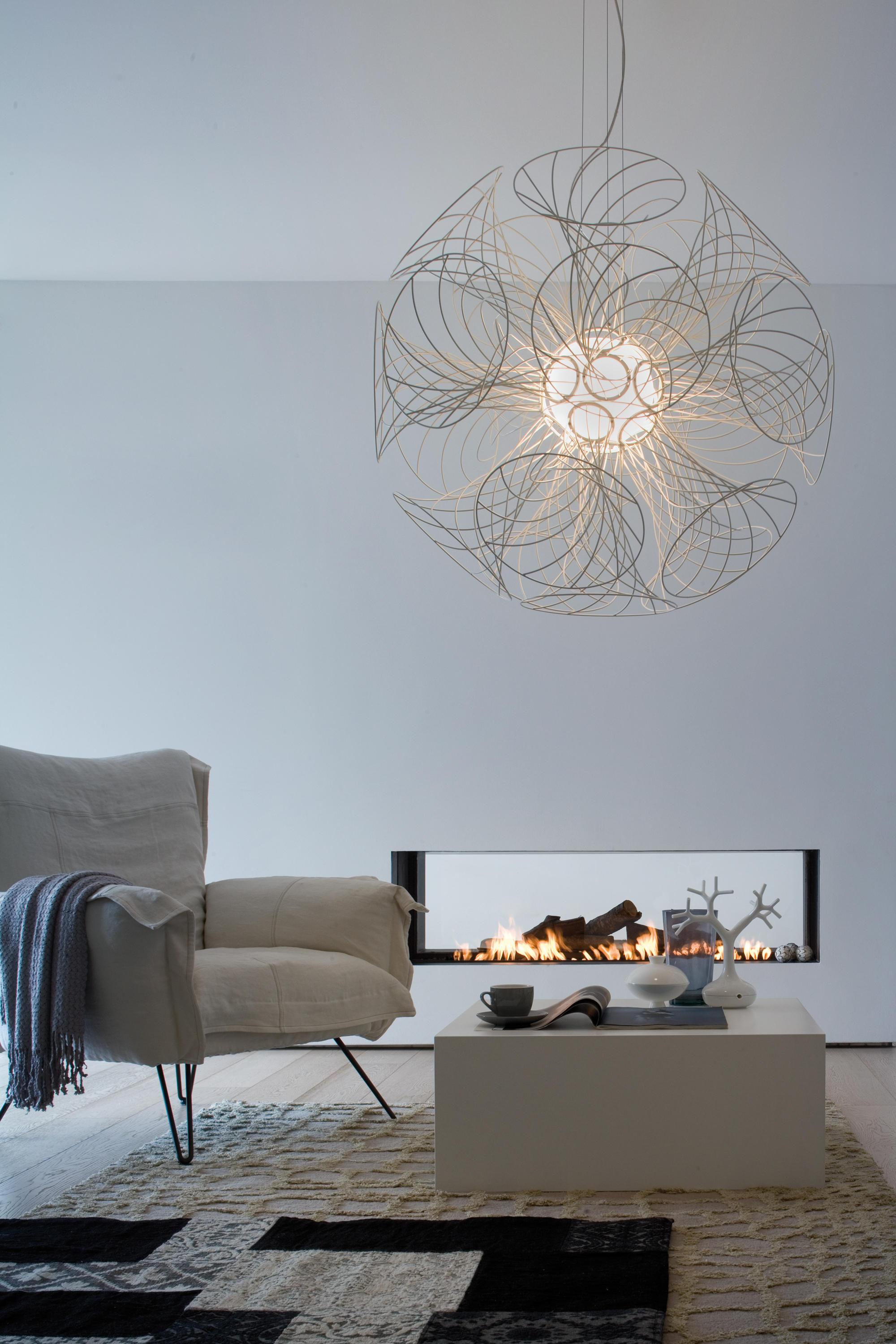 Подвесной светильник с рассеянным светом. Структура состоит из 19 металлических элементов, что вспомнить helicoidal форме, и которые, от центра лампы, где источник света находится, излучает наружу. Элементы, составляющие лампы были запланированы для того, чтобы казалось, будто подвешена в воздухе, Поддерживаемые только магнитные силы света и, следовательно, источника света. Их состав с точки зрения некоторых появляется геометрических и упорядоченный, но и с других точек зрения появляется динамических и случайных. Источник света, расположенный внутри опал ветром стекла элемент.