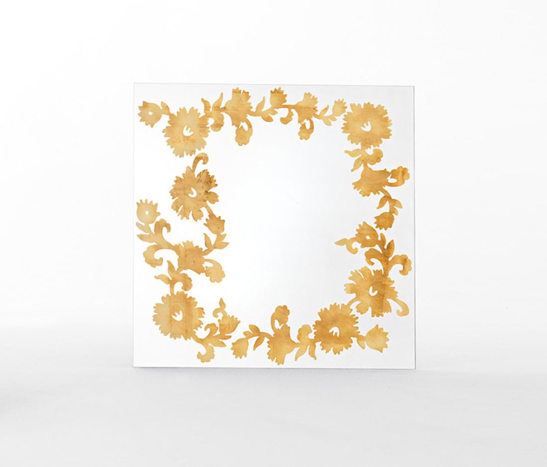 Зеркало с цветочным узором в серебряной фольги или фольги золотого цвета на спине.100 х 100 х 3 cm130 х 130 х 3 cm70 х 100 х 3 cm80 х 190 х 3 см
