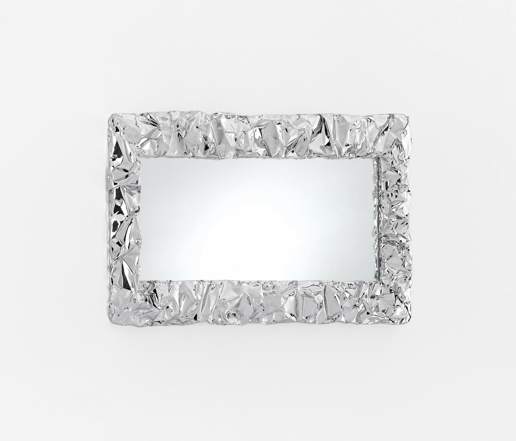 Зеркало с рамкой из хромированной руку-морщинистая алюминия. Будучи ручной работы каждое изделие уникально.