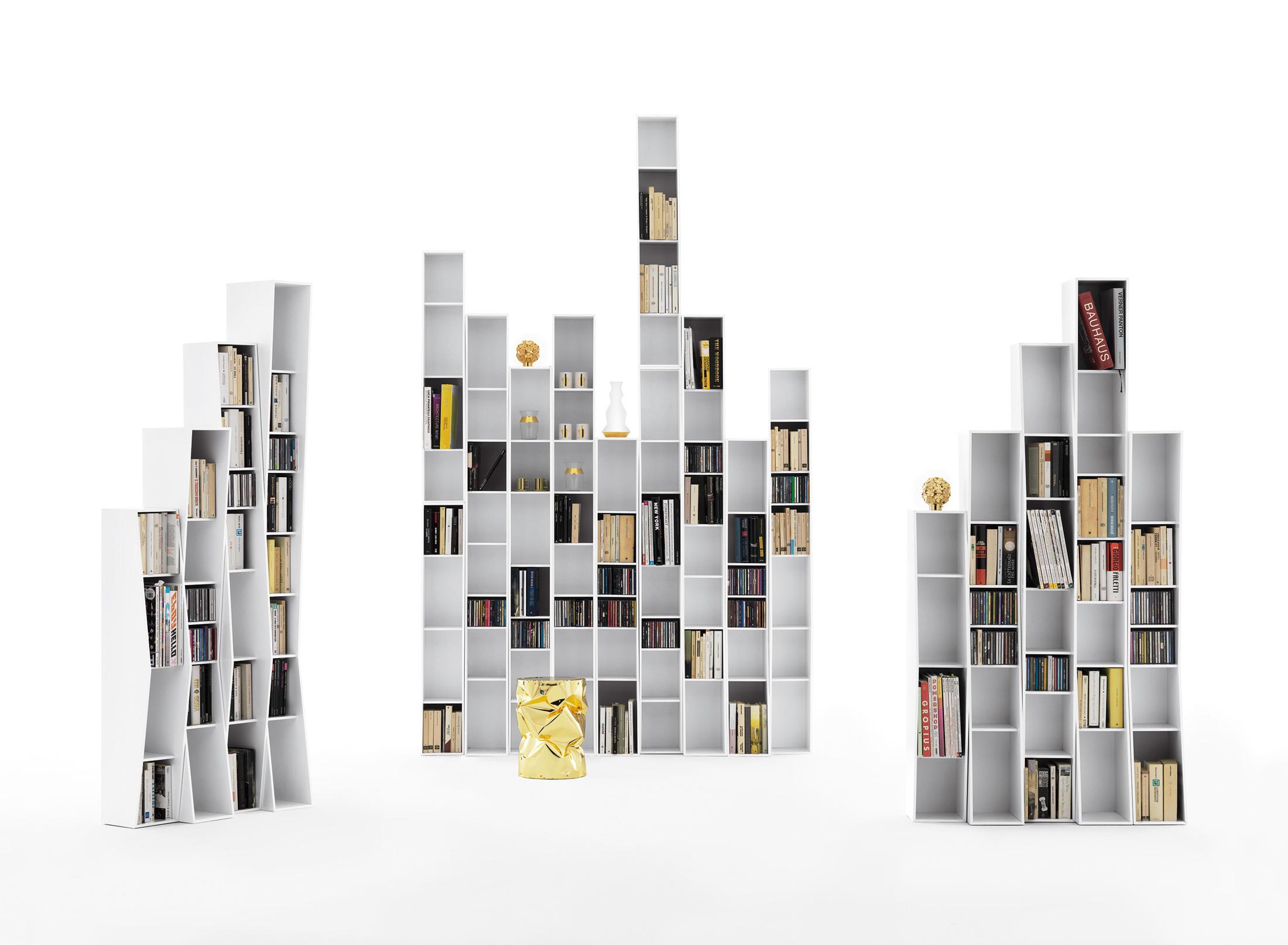 Открытым лицом системы комбинируются, штабелируемые и обратимых книжные полки, доступны в четырех различных высотах. Лакированный МДФ с растворителем-бесплатный анти-поцарапать краску. Фиксированные полки для книг, дисков, художественных книг и DVD-дисков. Он снабжен двойной стенкой сторона. Отделки: лакированный белый или цвет заказчика по RAL Классик. Размеры: 20x20xh117, 20x28xh147, 20x20xh180, 20x28xh206 см