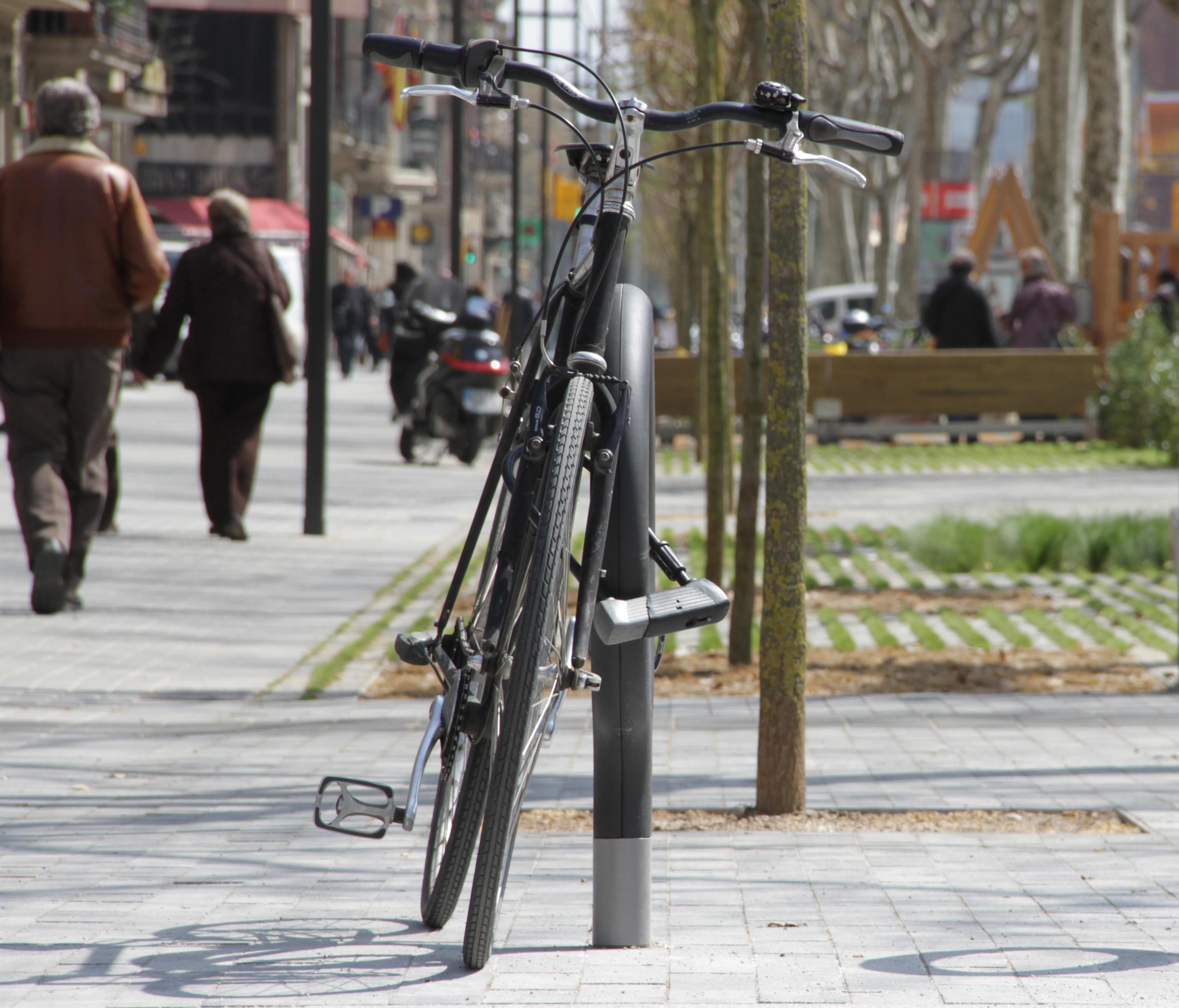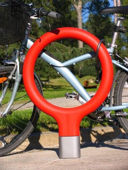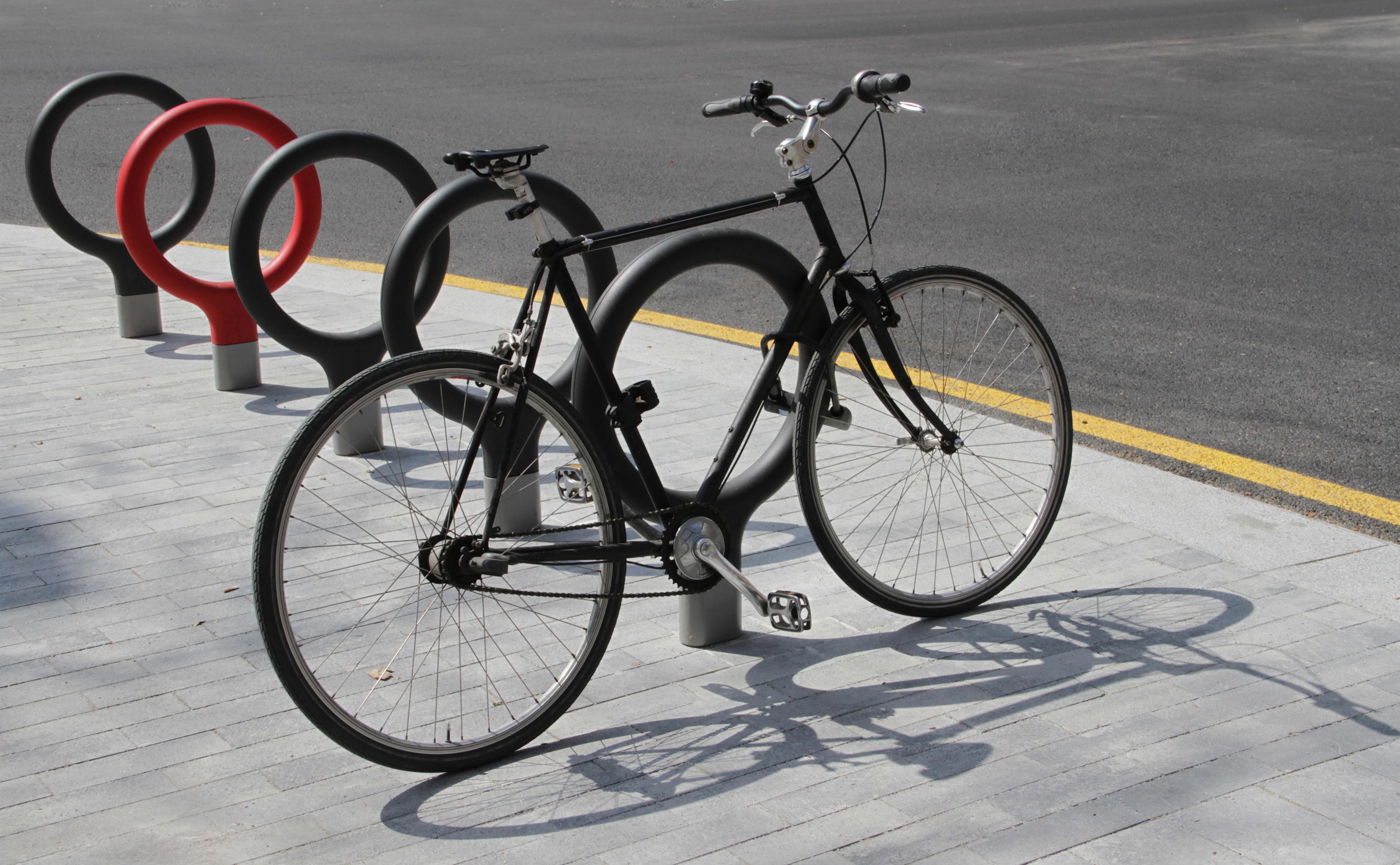 Динамическая крепление для велосипеда, который обновляет городской элемент, который становится все более необходимой в наши города. Безопасный и полезный элемент подготовлен для непрерывного использования. Он работает индивидуально или образуя группы. Материалы и отделки кузова в комплекте пенополиуретана высокой плотности, окрашенный в массе, красный или серый антрацит, с внутренней структурой из стальных профилей. База в порошковой краской серого литого алюминия. Установочный элемент встроен в дорожное покрытие с помощью 2 болтов которые вводятся в отверстия, сделанные ранее и залили эпоксидной смолой, быстросохнущий цемент или похожие. Элемент поставляются в полностью собранном виде и завернут. Инструкции по сборке прилагаются к велосипедной стойке. Техническое обслуживание не требует технического обслуживания. Вес 9 Кг