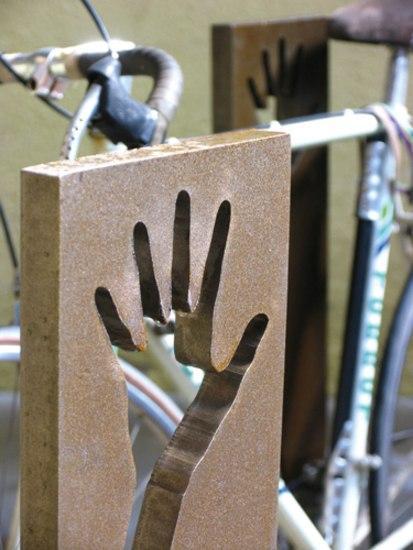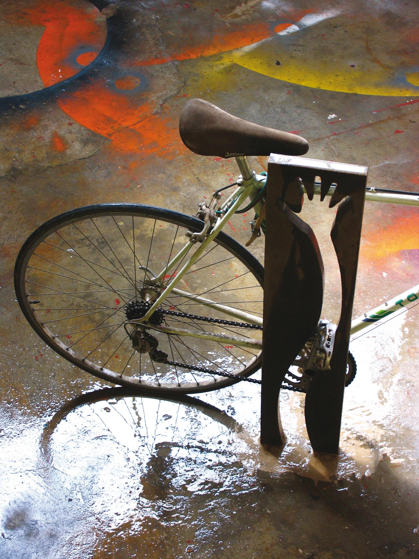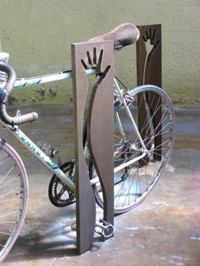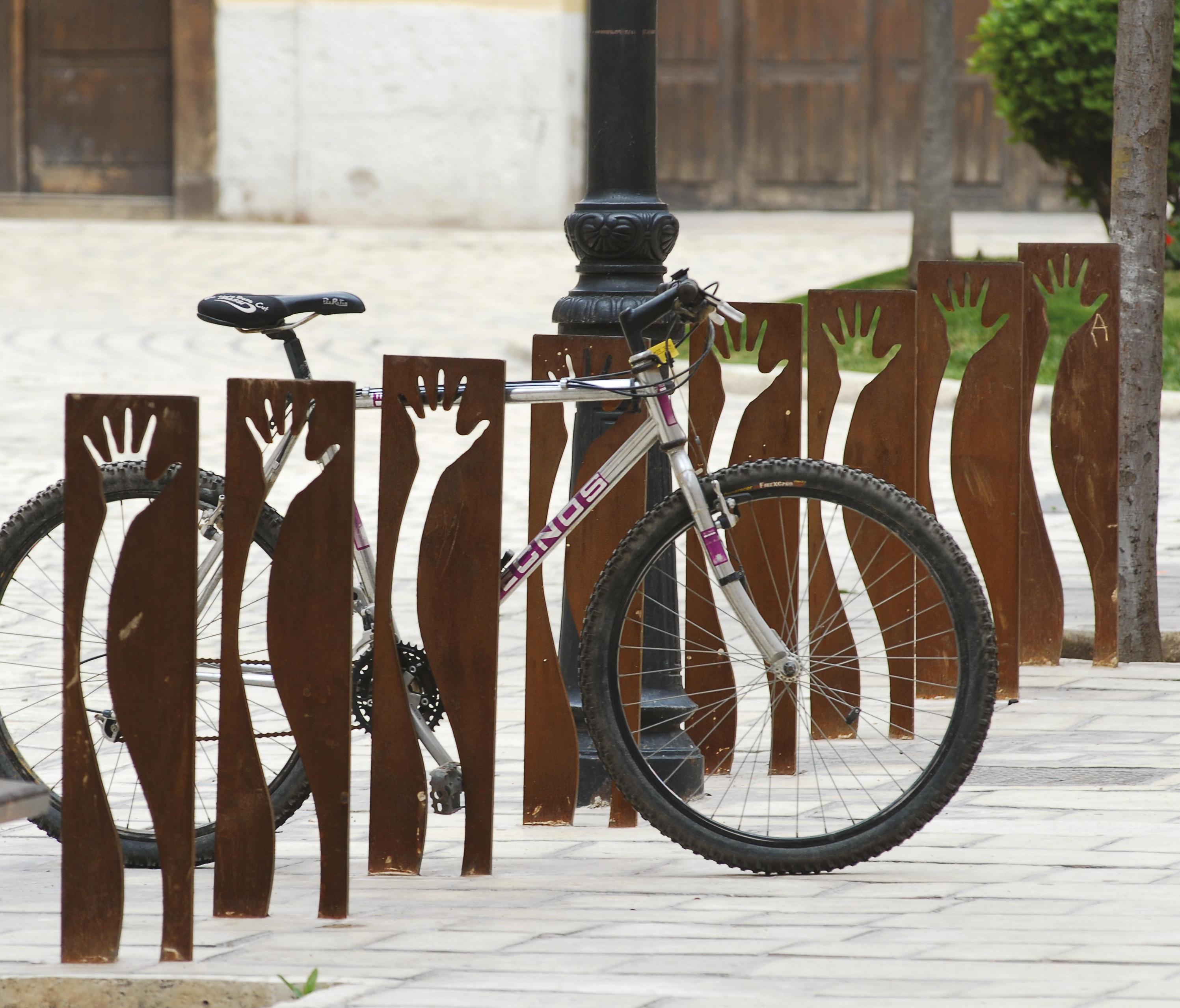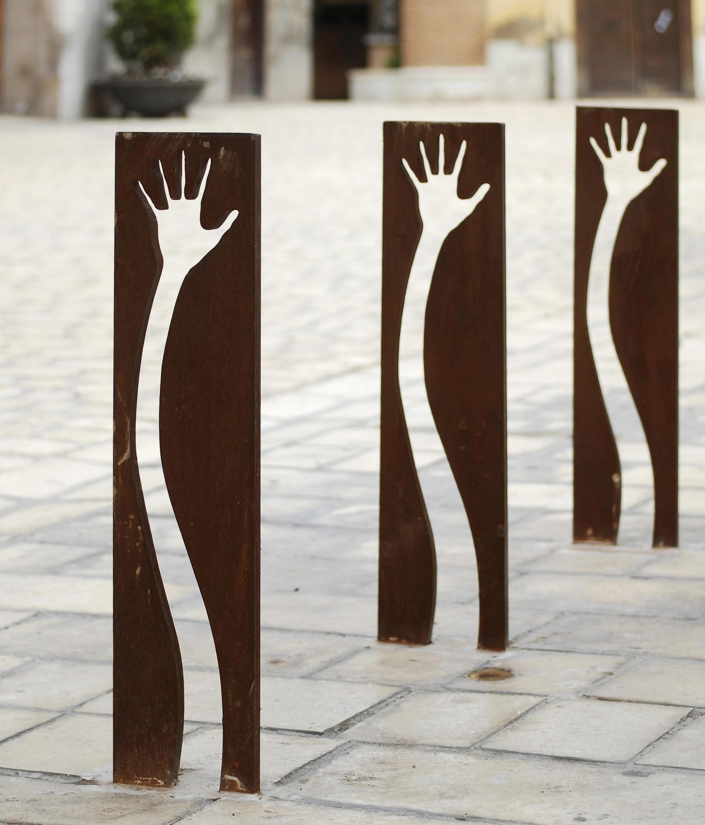 Фонарный столб, новый вид велосипеда для одежды, веселый, раскованный и очень прочная, предназначена для покрытия все возрастающей спрос на парковки для велосипедов города. Технические спецификации элемент из цельного куска сделаны с пескоструйной обработкой Кор-Тен лист стальной силуэт с помощью oxycutting процесс. Изделие поставляется в полностью собранном виде с анкеровкой инструкции. Вал крепится к асфальту посредством двух болтов на один и тот же кусок. Он не требует технического обслуживания. Вес 20 Кг