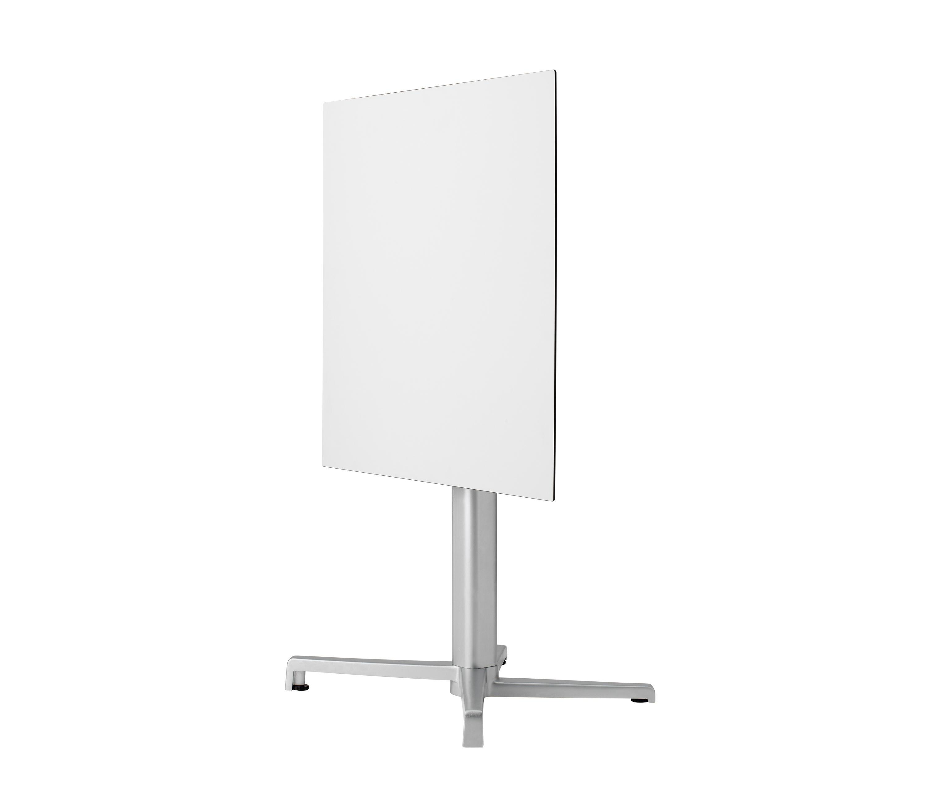 Литьем под давлением четырех ножек базы. Квадратные алюминиевые колонки с закругленными углами или с 70 х 70 мм. Квадратного сечения. Из литого алюминия Кронштейны для крепления к верхней. С 4 регулируемые fSeet. Покрытие отделка доступна в трех различных цветах: серебро, антрацит-серый или белый. Механизм складывания, с ручкой для облегчения выравнивания нескольких таблиц две высоты доступны: 73 см или 109 см неподвижное основание две высоты доступны: 73 см, 50 см или 109 см