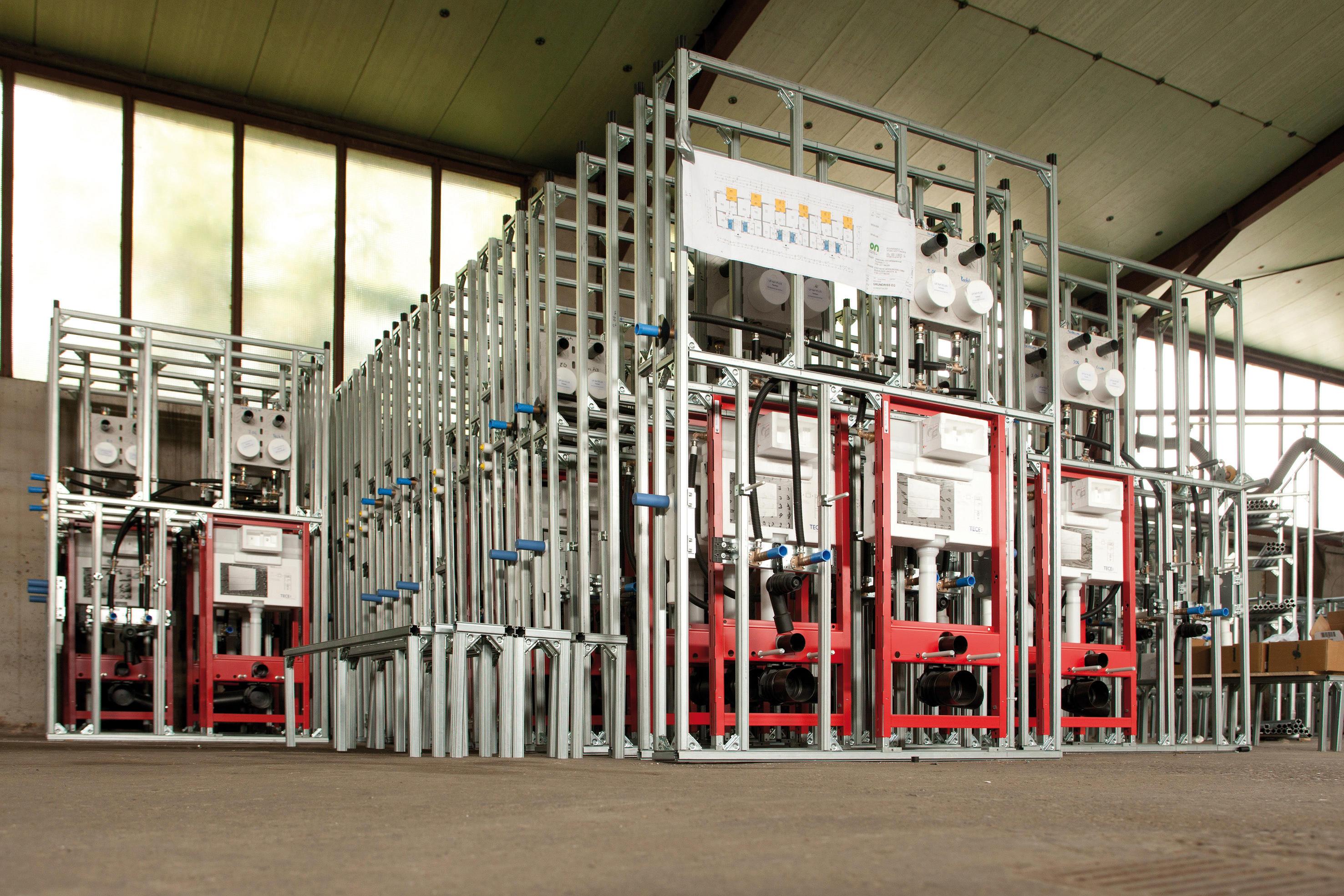Система строительства – полуфабрикат настенные модули обеспечивают надежность в планировании жилых зданий, как новых, так и модернизированных, планирование надежности, скорости и идеально согласованных интерфейсов важны. Около 20 лет, tece (теце) поэтому предложил промышленной сборки строительных услуг компоненты в комплекте настенные модули. Эти стены производятся в tece (теце) растение с индивидуальными требованиями проекта и доставляются на строительную площадку “just в timeâ€. Tece (теце) опытные руководители проектов поддержка проектов от проектирования до установки систем на строительной площадке. Промышленное изготовление в TECEsystem блок состоит из стабильной опорной раме, которая уже содержит все технологии канализации и труб для питьевой воды, канализации, отопления, вентиляции и, при необходимости, питания. В отличие от обычных собрание отдельных продуктов, tece (теце) поставляет готовые к подключению системы непосредственно на строительной площадке. Стандартизация промышленной сборки результатов в надежности в калькуляции себестоимости и повышение качества. Затраты и график известны с самого начала и соблюдается на сто процентов: это означает надежность издержек и сроков. Большим преимуществом этой процедуры является экономия времени – и оно особенно окупается в модернизации оккупированных зданий. Опыты показали, что в трех - или четырех-этажное жилое здание, ремонт ванных комнат с настенными модулями занимает примерно вдвое меньше времени, с помощью обычного метода. Это означает меньше мусора для жильцов, и меньше потери арендной платы для арендодателей. Но в новых строительных проектах, тоже, использование сборных систем означает, что здания могут быть заняты рано. Здание клиенты и разработчики могут быть уверены, что все шумоизоляцией и противопожарной защиты требований в каждой квартире, поскольку это учтено при предварительном изготовлении. Как производитель топить технологии, пристенной системы, трубы и канализация технология, tece (теце) предлагает все компоненты, необходимые для санитарно-технического оборудования. Это означает, что все компоненты TECEsystem идеально адаптированы друг к другу и протестированы. Всесторонняя поддержка TECEsystem блоки изготавливаются на заказ и поэтому отвечают индивидуальным требованиям строительных клиентов. С его гибким пристенной системы, tece (теце) вы можете удовлетворить все требования. В проекте планирования участка, tece (теце) проекта менеджеры консультируют и помогают определить степень заводской готовности. Tece (теце) затем создает почву планы и профили стен, а также трубопроводов сетевой планов и плитка выкройка планы, основанные на здании client’ы требования. Каждый санитарный блок затем изготавливается с той же – промышленные – точности. В день установки, tece (теце) поставляет готовые к подключению системы непосредственно на строительную площадку в алюминиевые контейнеры. На сайте, в системах просто необходимо опираться на стены здания и напорных труб из этажей выше связаны друг с другом. Tece (теце) инженеры на сайт, если требуется, и обеспечить подготовку системы слесарей.