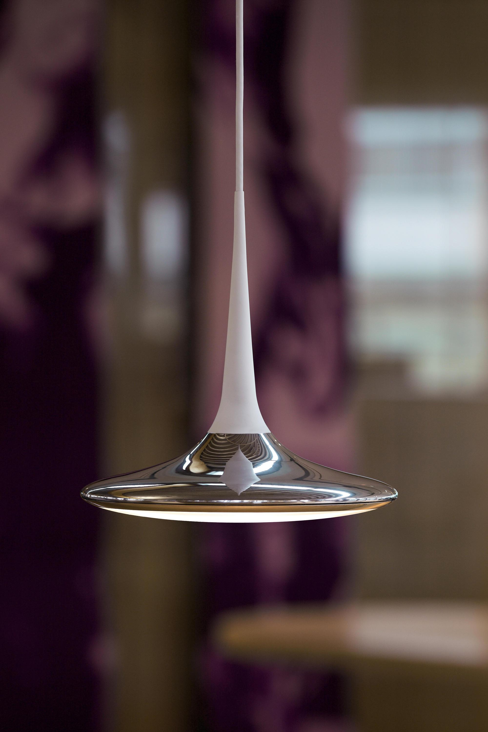 Падающий лист-это подвесной светильник, который отличается сочетанием полированного алюминия и матовой высококачественной пластмассы различных цветов. Блестящий, теплый-белый свет идеально распределяется, без бликов через оптические линзы. Падающих листьев всегда оснащен lightdim переключатель. lightdim переключатель будет в будущем разрешение оптимальное затемнение и эксплуатации светодиодных светильников с использованием простых, имеющихся или вновь устанавливаемых стандартом 3-жильного провода. Затемнение диапазона 5-100%, не более ограниченным, чем раньше. Этот продукт содержит встроенные светодиодные лампы, принадлежащие к классам энергопотребления: А++,А+,AEnergy классы по шкале а++ (наивысшая эффективность) до Е (самый низкий КПД).