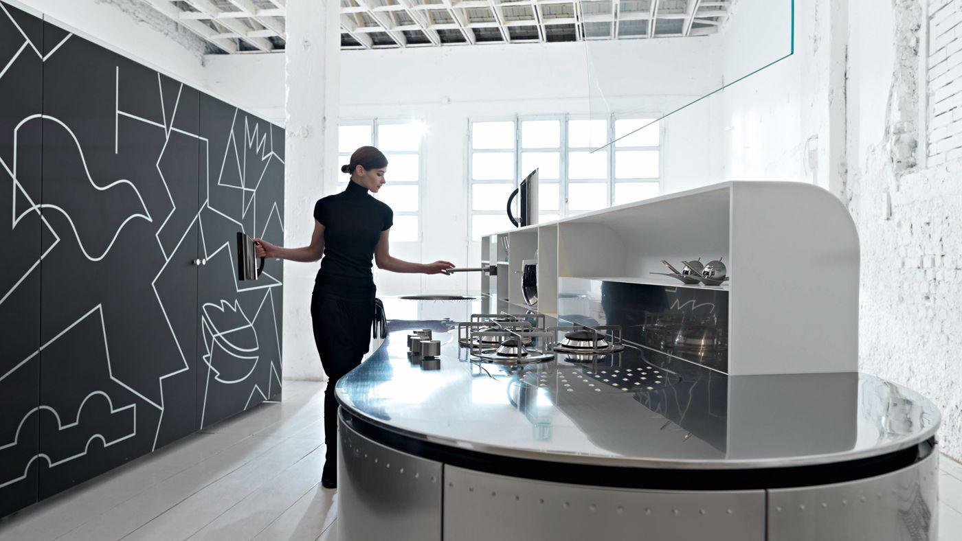 Анти-отпечатков пальцев нержавеющей стали высокие технологии, простота и чисто формальные и строгие линии-вот основные характеристики один из самых современных кухонь в мире, даже в своих новых Artematica пляж curva версии. Главная особенность Artematica пляж curva является его извилистые линии, которые отличают всю кухню и создавать вогнутые и выпуклые кривые, которые способствуют эргономичное использование помещения. Как и все Valcucine’с линиями мебели. Artematica пляж curva могут быть использованы со всеми Valcucine линий продукции, а также с оригинальным Artematica самой линии, придавая интерьеру дизайнер величайших планирования "свобода в мире". Просто как и оригинальная версия Artematica, изогнутая версия состоит в алюминиевый несущий каркас, к которому различные типы панелей для разных материалов применяются: лакированная МДФ, стекло, сталь эта система тоже легче, а это означает, что шарниры дольше, она закрывается тише, легче перерабатывать и имеет меньшее влияние на окружающую среду.